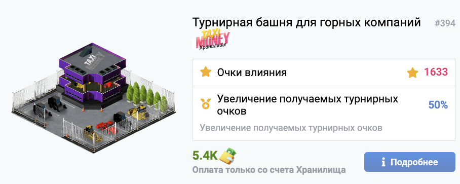 • Строить особые бонусные здания для Турниров Турнирные башни. Они значительно усиливают результаты Таксопарков и Горных компаний в Турнирах.