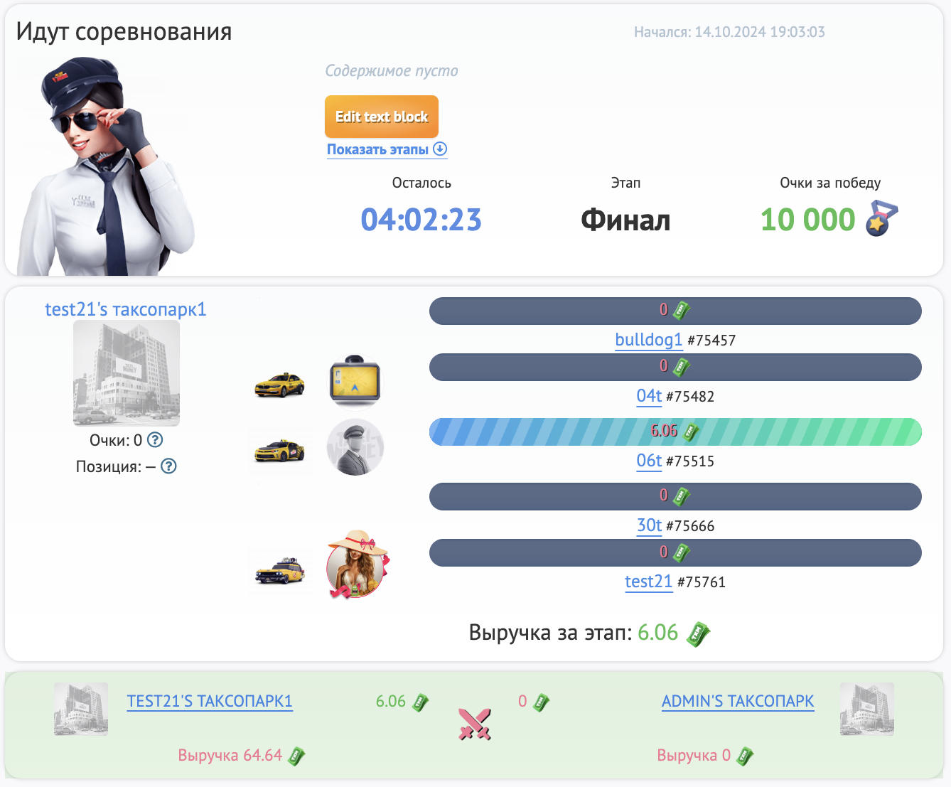 • Команда, заработавшая больше всего денег, получает максимальное количество очков за этап