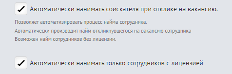 Там же, на странице редактирования вакансии, вы можете настроить автоматическое устройство соискателей.