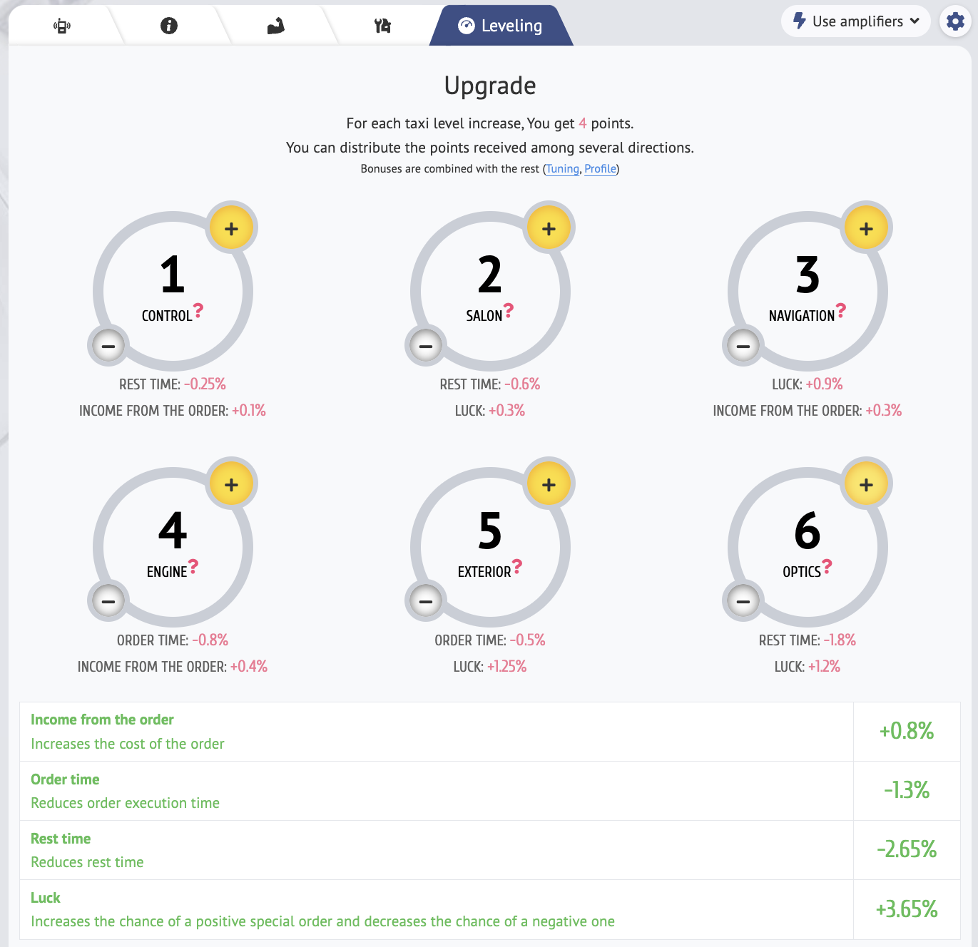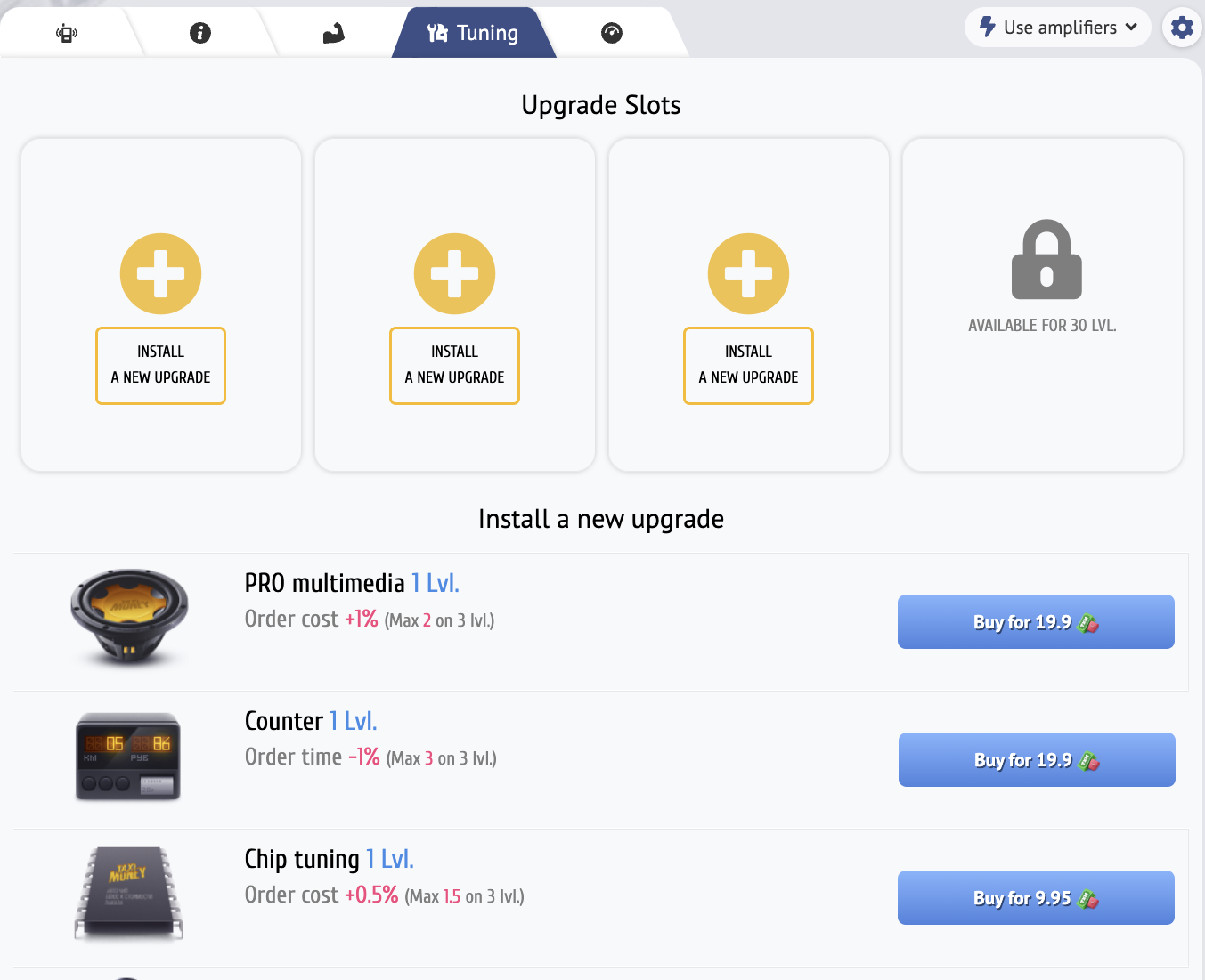 At the next levels, new upgrade slots for taxis and bulldozers will open up in the "Tuning" tab.