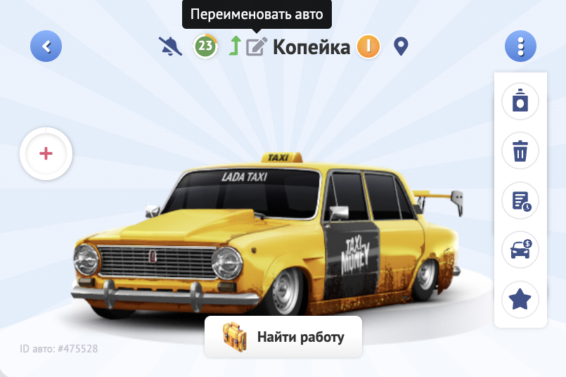 Для изменения цвета необходимо перейти в гараж и выбрать такси.