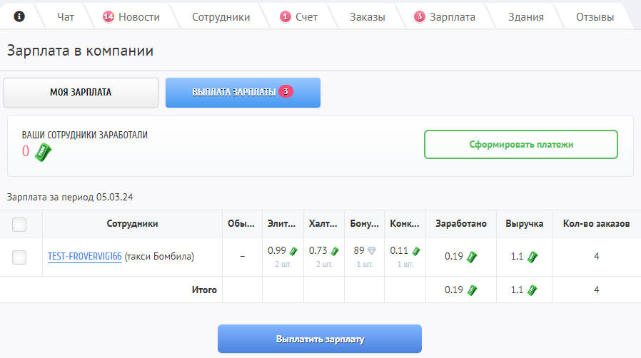 Становясь работодателем, Вы берете на себя налоговые обязательства за налоги с прибыли и зарплаты ваших сотрудников. Выполнить эти обязательства можно на вкладках бизнеса «счет» и «зарплата»