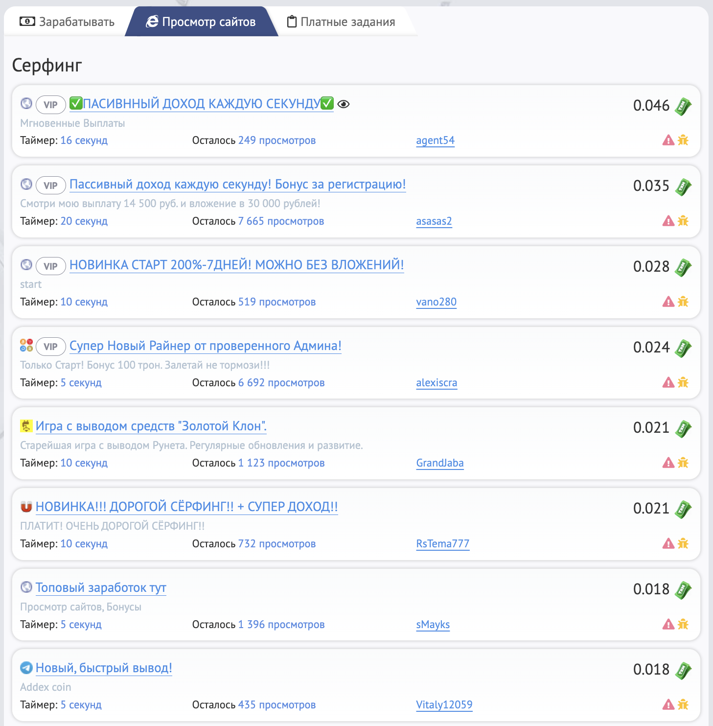 Виды заработка