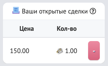 В блоке “Ваши открытые сделки” отображается руда, которую Вы выставили на продажу, тут можно отменить заказ. Если произошел частичный выкуп ресурса и ордер был Вами отменен, то кристаллы за размещение ордера не возвращаются.