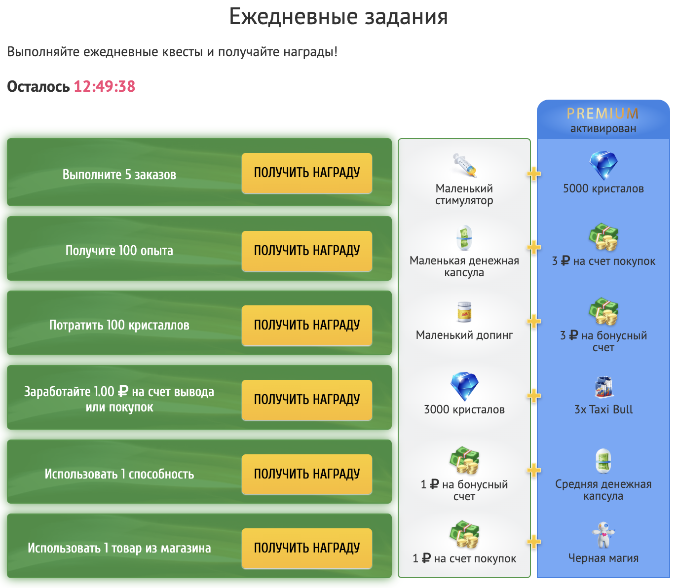 Пополнить счёт покупок (и получить Бумер в подарок). Затем подкупить кристаллов для бизнеса или для личного пользования, или продлить премиум, или пройти ТО за прямое пополнение. И за все пополнения занять первое место в конкурсе на наибольший депозит за день, и получить за это ещё один Бумер в награду — отличная инвестиционная идея!