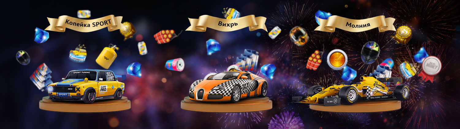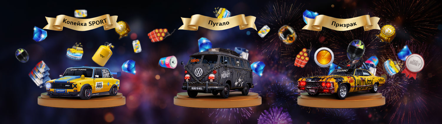 Выиграй бонусные такси прошлой акции в ноябрьских лотереях с монетами! Это чертовски завидные для любого гаража машинки с дьявольским доходом и настраиваемой прокачкой — Призрак 3-го ранга и Пугало 2-го ранга. А также Копейка SPORT, тоже с настраиваемой прокачкой!